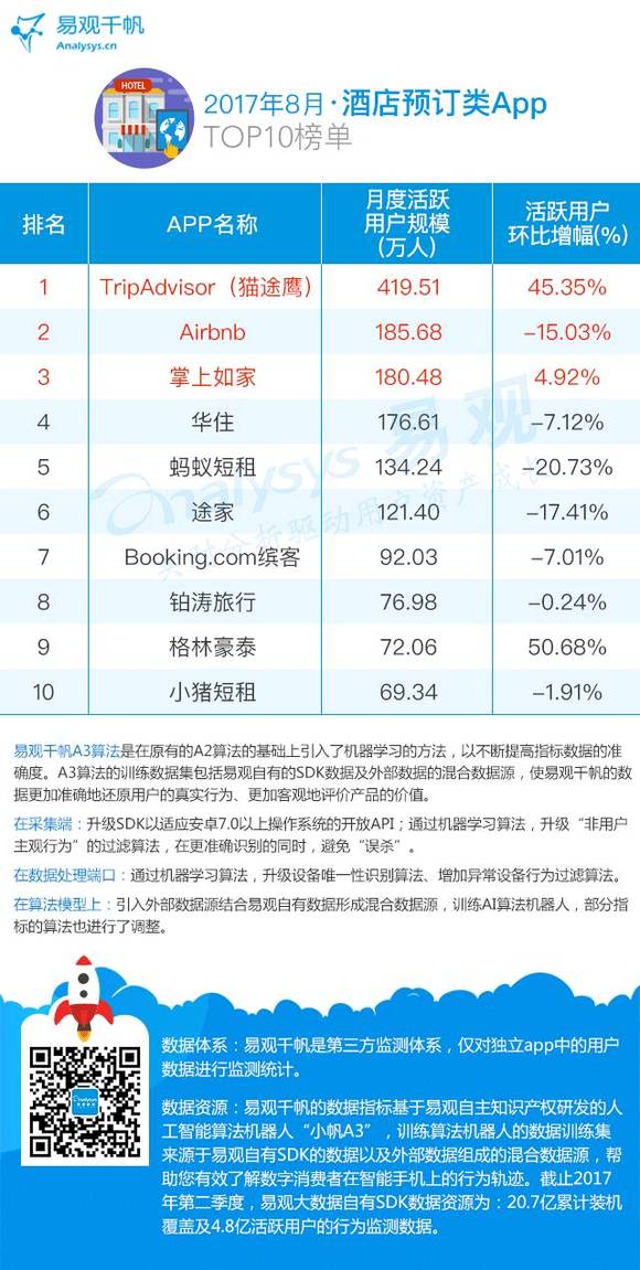酒店预订类App TOP10榜单