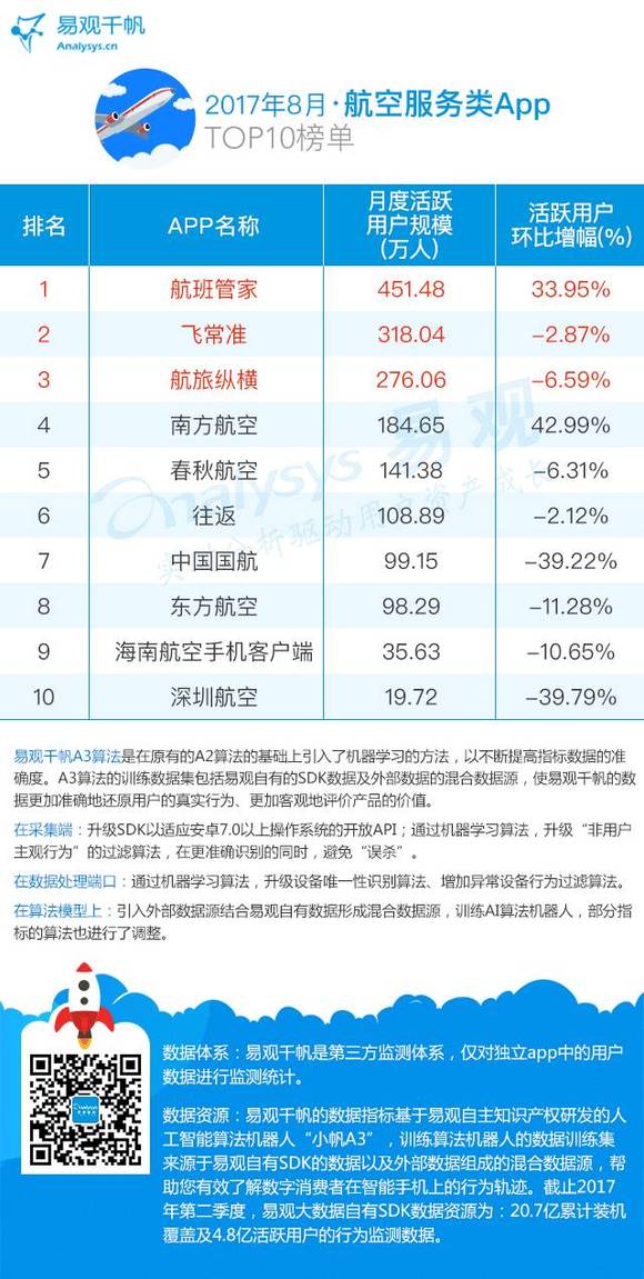 航空服务类App TOP10榜单