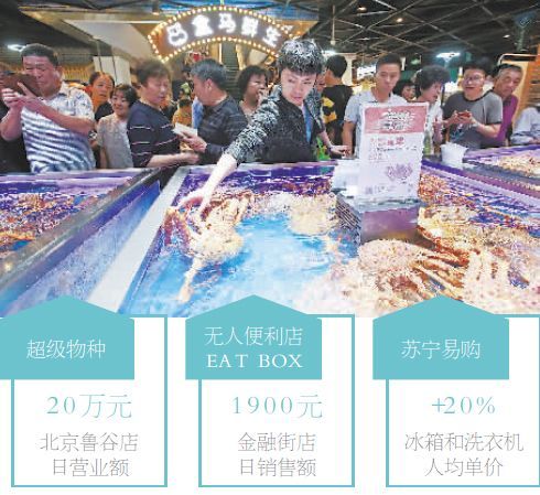 事实上,不论是早前所应对的电商冲击,还是如今要与新零售业态争锋,加码体验业态、创新销售场景始终是传统卖场揽客的王牌。苏宁易购相关负责人表示,中秋、国庆双节黄金周既是消费者出游旺季,同时也是“金九银十”的家居装修旺季,而经过此前的门店布局调整,苏宁易购旗下的云店已经引入了不少如“优趣”新奇特零售中心、VR体验馆、手机体验区、苏宁超市、苏宁影城、红孩子等在内的全新业态加入。从成果来看,今年国庆期间,苏宁易购门店高端产品销售大增,其中冰箱和洗衣机产品的人均单价较往年提升20%;且受假期出游高峰影响,如运动户外、汽车用品、休闲食品、酒水饮料等消费量环比增长近3倍。