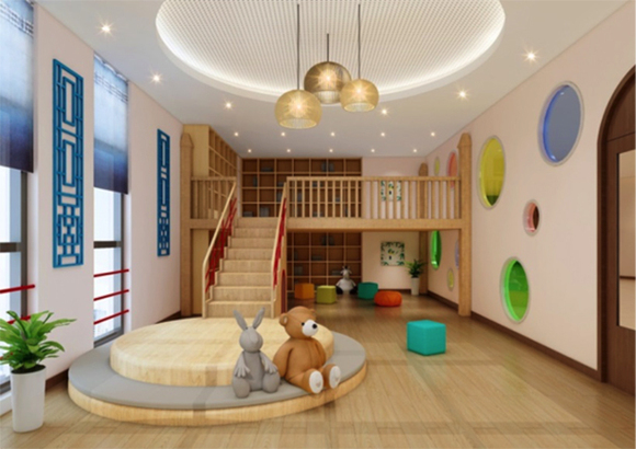 在室内空间设计材料的选用方面, 家具是新西兰松木 ,室内安装整套新风系统、智能空调,冬季采用地暖采暖,空间内墙体可能对孩子造成意外伤害的尖角、直角统一做圆角处理。还有京东自主研发的人脸识别系统全天360°监控,保证孩子的安全。