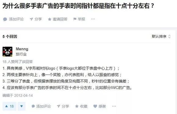 “为什么手表广告照片的时间都是设定在10点零8分?”
