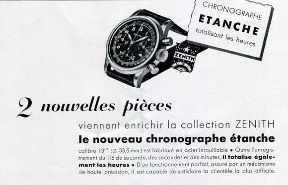 我们在一张1940s年代广告里,发现了真力时计时腕表,足见真力时在计时码表领域里的领先地位。
