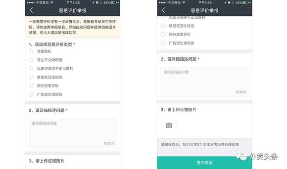 随着外卖平台愈加规范化,美团已经上线恶意评价举报功能,给了广大商家们一把“自卫刀”。
