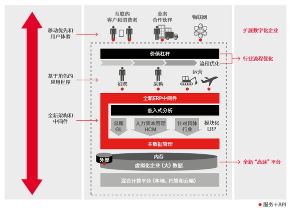 调整IT职能定位 借助商业生态圈的力量。一直以来,IT部门都被视为后台或支持性部门。但如今,IT技术已经渗透到企业运营的方方面面,它连接着企业与员工、客户及合作伙伴。相应的,IT部门的职能定位已经从过去的职能性部门演进为业务部门,从成本中心过渡到利润中心。