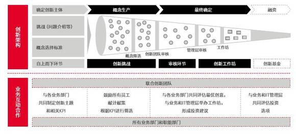 创新不仅仅是新颖的想法本身,而是要在IT和业务组织内部,建立一套严谨且行之有效的创新架构,同时还要进行有效管理,才能源源不断产生创新成果。