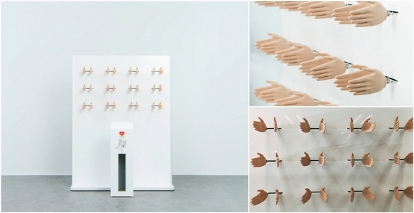 想象你走进便利店,向店内募捐箱里投了一块钱,整面墙的人造小手突然啪啪啪啪地鼓起掌来——这种超现实的体验还是挺微妙的。