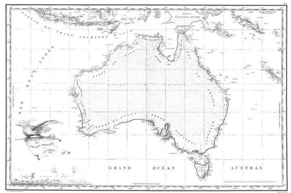 或许因为面积太大,直到1811年法国航海家Louis de Freycinet才首次准确地绘制了澳洲地图: