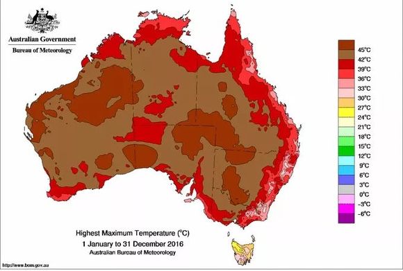 为啥内陆没人住?因为实在热的要命!看看2016年澳洲各地最高气温就知道住在内陆会是什么后果……