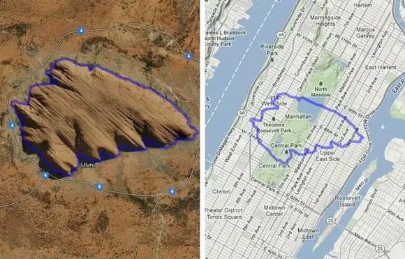 位于中间的uluru,又名澳大利亚艾尔斯岩石(Ayers Rock),是世界最大的整体岩石。