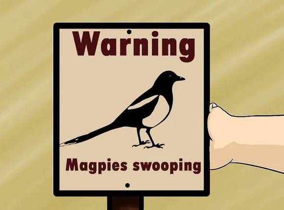 如果看到下面的警示标志要当心,澳洲喜鹊很可能在附近狠狠地瞪着你,可以选择绕道而行: