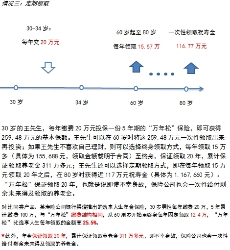 需要说明的是,与万能险等理财产品预定收益不确定不同,这类传统险产品,所有的保险利益都是确定的,白纸黑字写在合同上。除了对冲意外之外,“金典人生”还有一个重要作用就是财富传承,生命表的终极年龄为100岁,如果被保险人生存至100岁,则保险公司向其本人给付保险金;如果100岁之前不幸死亡,则保险公司向其指定受益人给付保险金。