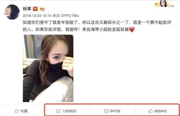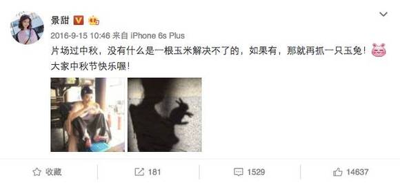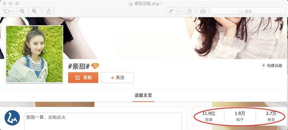景甜微博的点赞、转发、评论数据乘以10,也赶不上杨幂和赵丽颖。