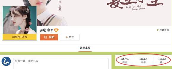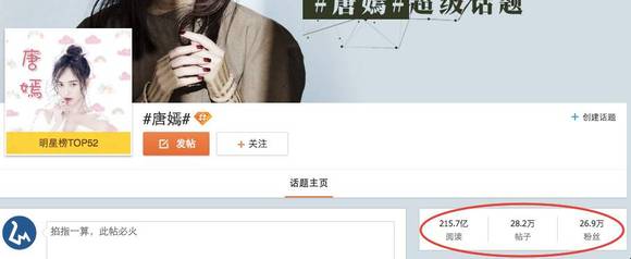 景甜与同班同学郑爽的微博话题量之间,大概差了两个唐嫣。
