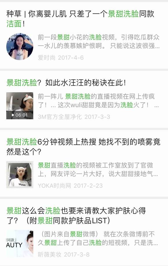 在这个阶段,为景甜打响第一炮的,是著名的“景甜洗脸直播”。