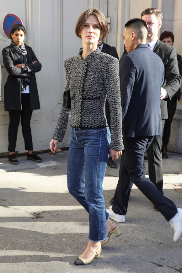 在出席香奈儿2018春夏大秀时,Marine Vacth一身外套配牛仔素颜出镜,优雅率真的气质依旧秒杀一切华丽的装扮!