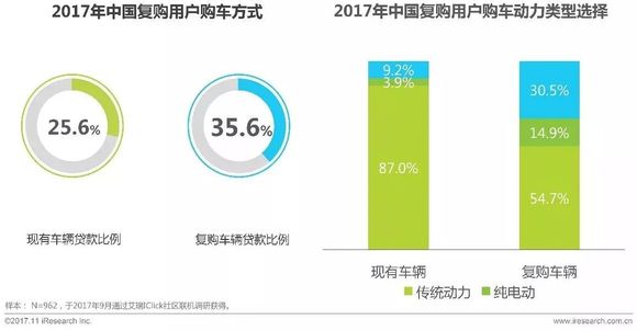 复购用户再次购车贷款比例有较大幅度提升;纯电动及混合动力车型用户接受度提升较快
