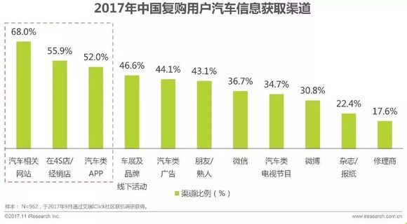 汽车相关网站/APP、经销商是复购用户最主要的汽车信息获取渠道