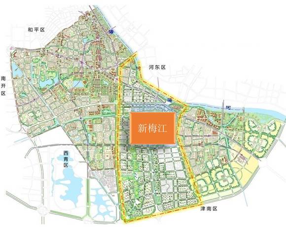 天津市新梅江板块位于天津市中心城区南部的黑牛城道两侧地区,北临海河,南至外环线,西侧紧邻文化中心城市主中心,东侧紧邻天钢柳林城市副中心。据中国指数研究院天津分院介绍,该地区定位为集总部办公、商业休闲、宜居社区为一体的城市活力区。下面就带您一起走近新梅江,了解为什么这里成为各路房企必争之地。