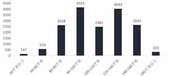 从单套总价上看:板块起步价较高,80-140平米为绝对销售主力,300万以上总价段成交占比最高,为47.85%;总价150万以下的成交量较少,占比仅为4.21%。