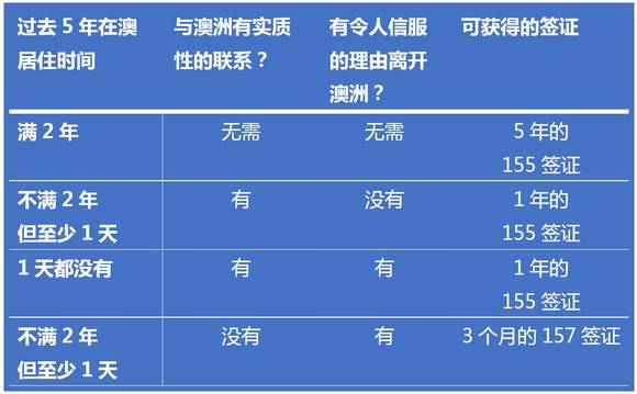 那如果没有满足这个条件怎么办?没关系,移民局也不是那么不近人情,如果在持有PR期间在澳洲居住至少一天,而且可以满足并证明您与澳大利亚有商业联系,或文化联系,或雇佣联系,或个人联系,将有机会获得为期一年的155签证。