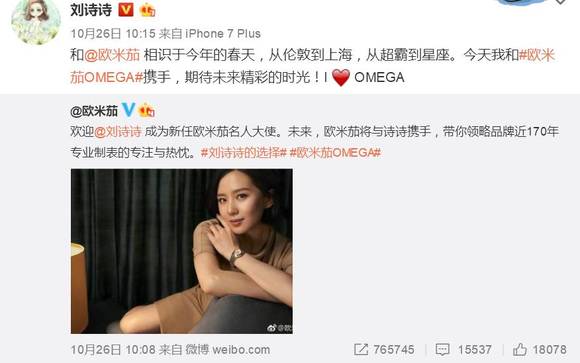 以刘诗诗转发的欧米茄官宣广告为例,带来了超过76万的转发量和超过11万的评论。