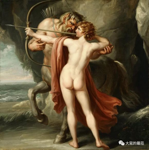 △意大利画家Giovanni Battista Cipriani 笔下的奇伦正在教导阿基里斯射箭技巧。