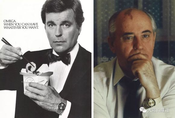 △美国著名电视剧演员罗伯特 瓦格纳(左),以及前苏联总统戈尔巴乔夫(右)皆曾佩戴著名的星座系列曼哈顿腕表。