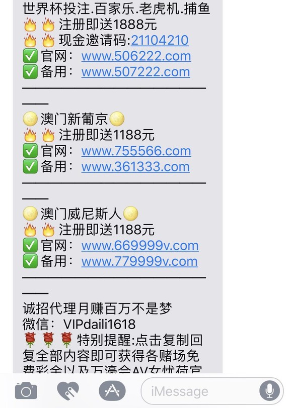 比如你手机经常会收到这样的信息,就属于这种性质的网络赌博。