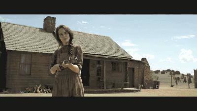 在这部「无神」中,米歇尔·道客瑞不再是画着精致妆容、穿上华丽衣服,靠着一张尖酸刻薄的嘴出口伤人的大小姐了。而是变成了一个靠着枪杆子说话的农场主妇弗莱彻,武力值和霸气值MAX。刚刚出场,就在黑夜中一枪打中了罗伊的脖子左侧,差一点就要了他的小命。