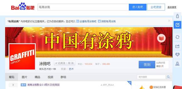 在百度涂鸦吧的首页,拉着一条横幅“中国有涂鸦”。《中国有嘻哈》火了之后,这个句式显得有一种特别的力量感。