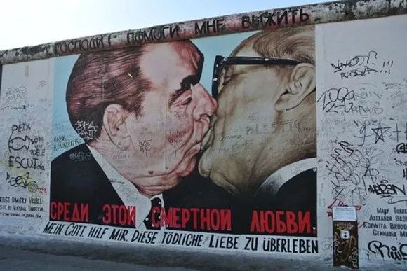 在1968年法国的五月风暴中,涂鸦席卷了巴黎。随后,柏林墙就成为了世界上最好的涂鸦画板。前苏联艺术家迪米特里·弗鲁贝尔柏林墙上创作了著名的涂鸦《兄弟之吻》,描绘前苏联领导人勃列日涅夫和东德领导人埃里希·昂纳克的热烈亲吻。