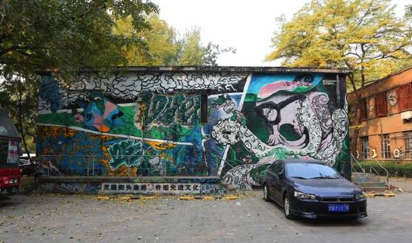 (北京服装学院外被粉刷的涂鸦墙壁)