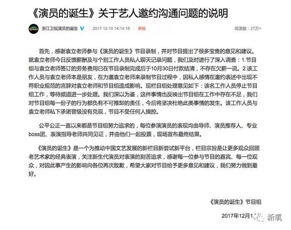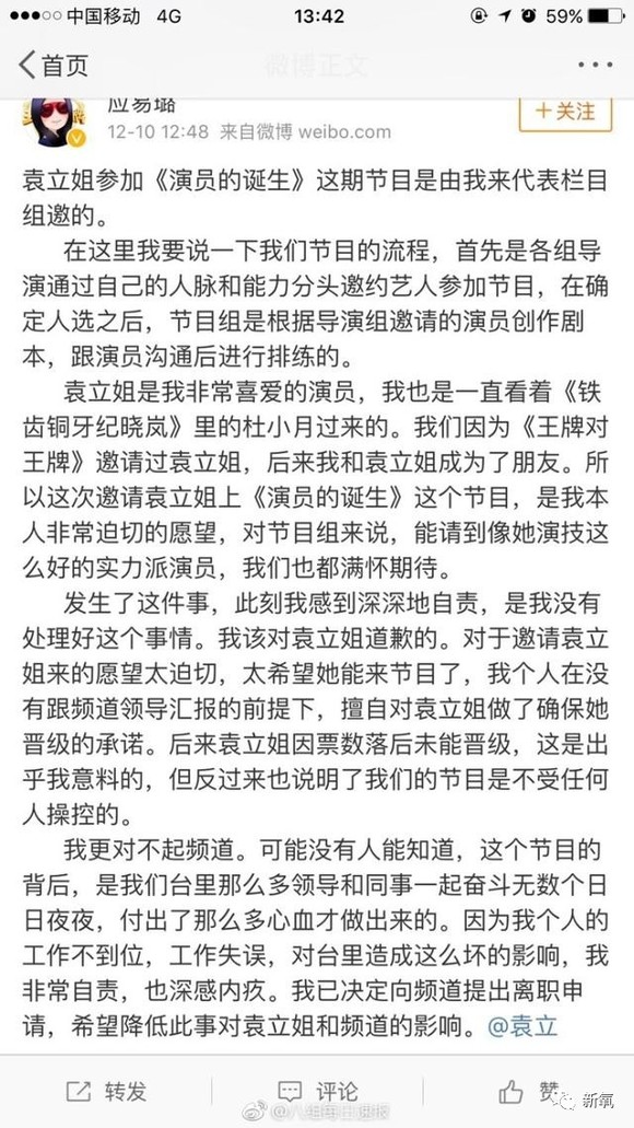 随后小导演也在微博上解释了事件,并在微博上向袁立道歉,并且提出辞职。