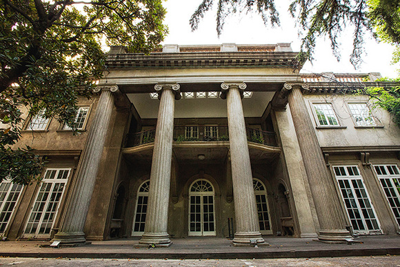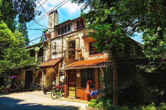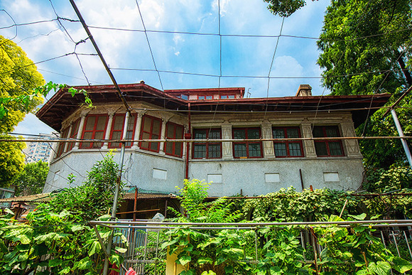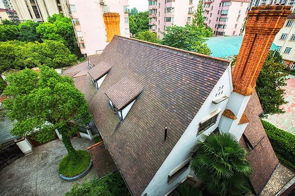 邬达克是个浪漫且细致的人,这一点从他的自宅中尤为可见一斑。番禺路129号,曾经的哥伦比亚路57号,矗立着一栋三层英国都铎式复兴风格的小别墅,如今隐匿在一幢六层高的现代酒店公寓背后。露明木结构、陡峭的坡屋顶、屋顶老虎窗、立面直棂窗和高耸的烟囱等,都是邬达克根据自己心爱妻子的喜好设计而建。1931年至1937年邬达克夫妇与他们的三个孩子一直居住在这幢带着大花园如童话般的英式乡村别墅里,这一时期也正是邬达克在上海的事业高峰期。
