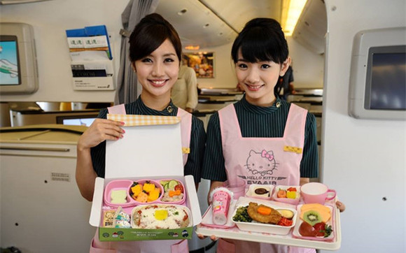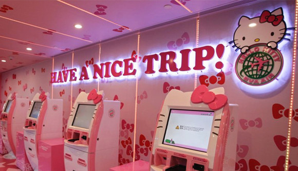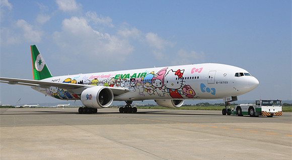 1974年Hello Kitty诞生于日本,由日本三丽鸥公司创作,43年来,这个可爱的卡通形象在超过130个国家引来数以万计人们的喜爱。除了身边的产品外,还有Hello Kitty主题餐厅、主题乐园、主题酒店等。此外,台湾长荣航空公司(EVA Air)还推出了Hello Kitty主题飞机。(波音777-300ER)