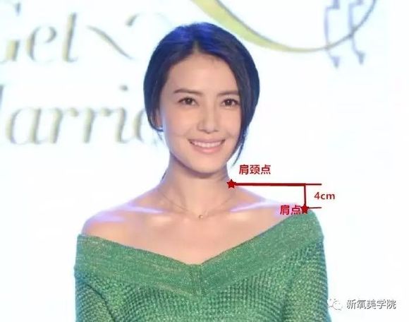一般来说,在不过度锻炼斜方肌的情况下,肩颈点到肩点的垂直距离如果等于4cm,就是标准平肩,如果大于5cm以上,就是溜肩,如果小于2cm,就是曾泳醍这样的端肩,曾泳醍的这种情况比较少,但是也有。