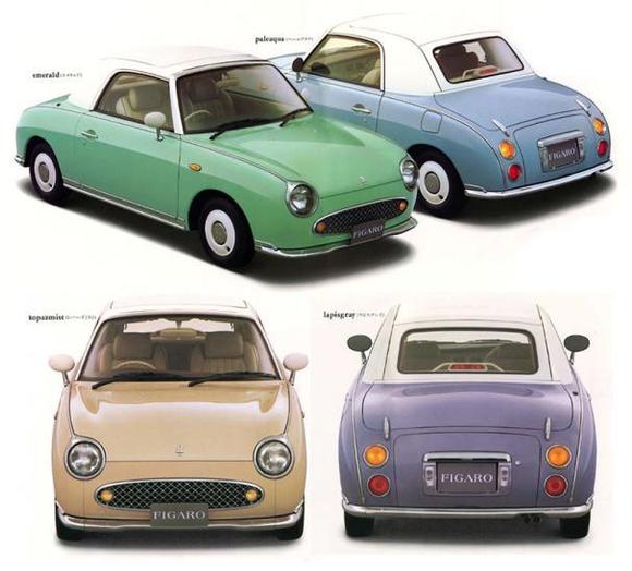 青石灰、翡翠绿、水绿蓝和托帕玉黄四色版本中黄色产量最少也最受收藏青睐。新车销售仅在日本国内进行,其他国家也一样受到欢迎,比如伦敦就有一家专卖Figaro的二手车店。