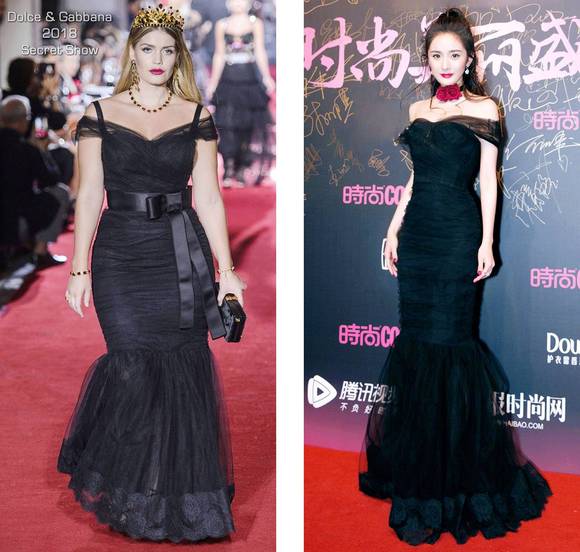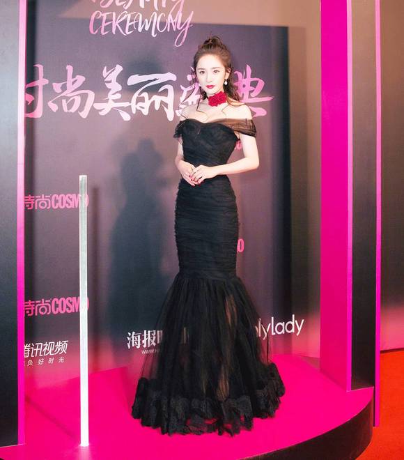 杨幂当晚穿得像个妩媚版的夜礼服假面,我觉得她这次的红毯造型没什么野心,应该只是想秀个曲线~