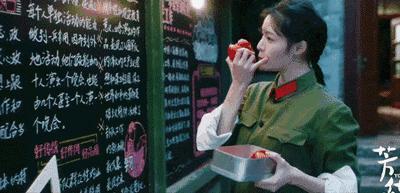 电影里她拿着一个跟她脸差不多大的西红柿在啃,看着吃得特别香,我就问她怎么做到的,她说因为真的很好吃啊!