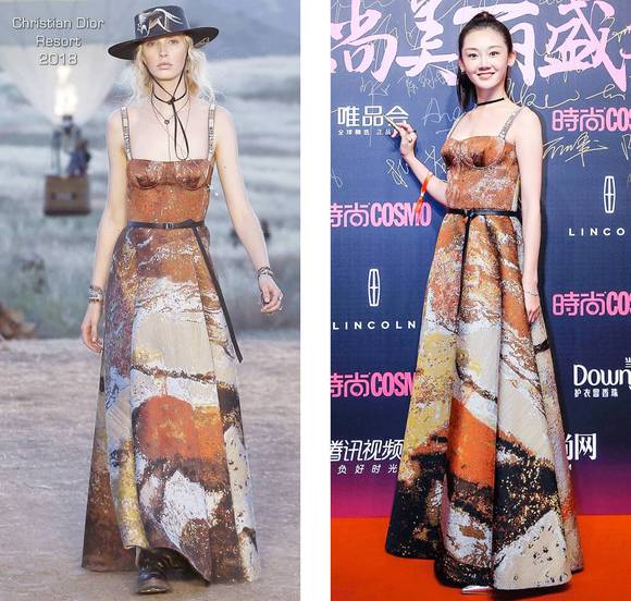 我觉得钟楚曦的长相在时尚圈会很吃香,长得高冷,打扮得也比较有品位。这次她穿了件Louis Vuitton 2018早春的亮片仙女裙,在她身上酷毙了。