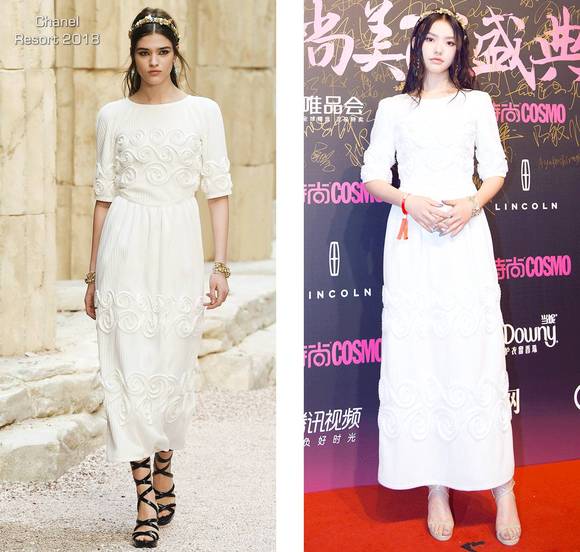 林允虽然穿着Chanel 2018早春系列的希腊女神裙,但我觉得她更像一个女神经,而且是特别耿直的那种。