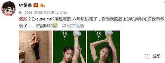 在争议很大的时候,钟楚曦专门发博反驳假腿说,还自己凹了一个海报造型。