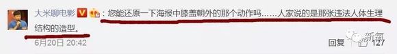 还有在《芳华》发布海报时,有人评论海报脚背对着脸的高难度动作有违人体构造学,对海报的真实性产生质疑。