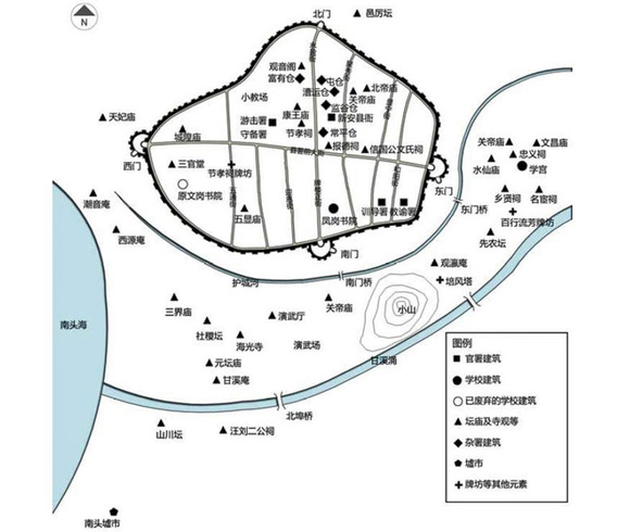 从此,南头古城便成为广东在明、清时期的新安县治所在地,城市建设由早期的防御工事开始变得更加丰富,随着城隍庙、仓廪和县衙在城内的完善,更多属于民间的生活空间蔓延到高大的城墙之外,在南门以外的地方,陆续出现了祠庙、学宫、演武场、社稷坛等教育、祭祀和宗教设施,南头古城成为一座有着成熟脉络和景观的正统城域。