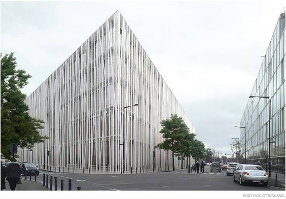 规划中的Chanel 的高级手工坊集合空间将于2020年竣工开放,地址位于巴黎北部 Porte d’Aubervilliers 附近,面积2.5万平方米,该空间外观使用了独特的混凝土外骨架,优先考虑自然光线采光,有五层楼和两个地下室,包括了设计和制作工作室以及宽阔的花园(效果图如下)。