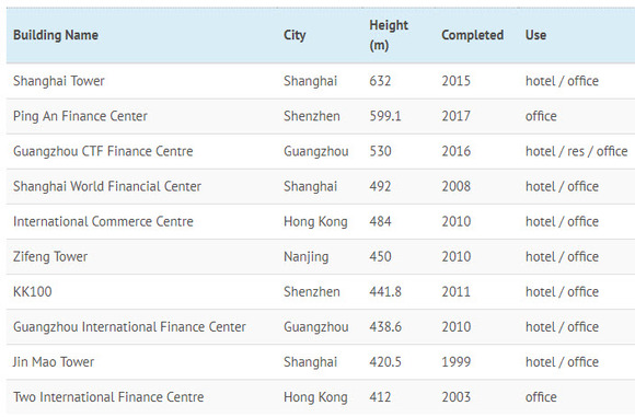此外,全球前100高的摩天大楼中有46栋坐落于中国,未来一年这一数字还会上升。