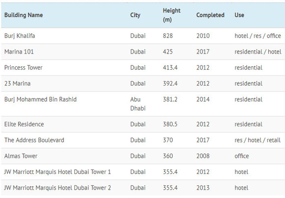仅仅迪拜一个城市就拥有将近1000座高层建筑,目前在建的超过300米高度的建筑有13处。