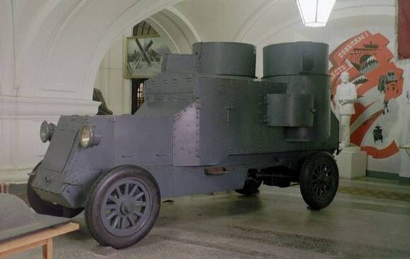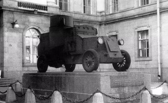 这辆装甲车是独特的历史纪念碑,1917年4月,列宁在二月革命临时政府倒台后返回俄国的第一次向工农群众所作的即兴演说,便是站在这种装甲车上进行的。“面包会有的,一切都会有的!”成了一句名言。如今这辆车已不存在,但它的复制品在1992年被搬进了圣彼得堡炮兵博物馆。