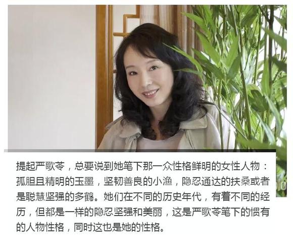 严歌苓12岁考入成都军区,成为一名跳红色芭蕾舞的文艺兵。1978年,20岁的她就发表了处女作童话诗《量角器与扑克牌的对话》。
