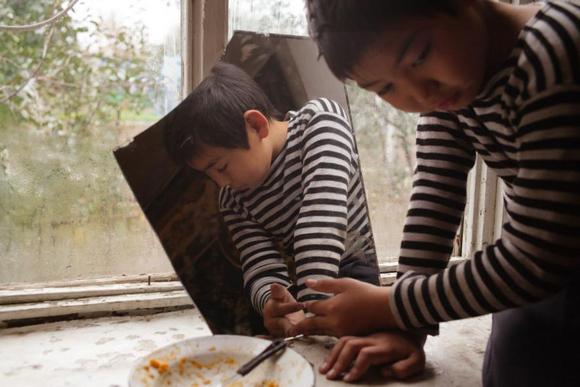 在塞米伊市家里的阿利简·伊曼贝夫(Alijan Imanbaev)。阿利简患有癫痫和学习困难。